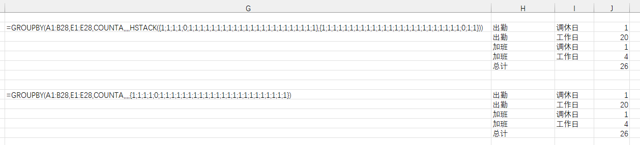 第七参数filter_array支持多列进行输入,筛选时根据第一列数组处理。所以公式=GROUPBY(A1:B28,E1:E28,COUNTA,,,,HSTACK({1;1;1;1;0;1;1;1;1;1;1;1;1;1;1;1;1;1;1;1;1;1;1;1;1;1;1;1},{1;1;1;1;1;1;1;1;1;1;1;1;1;1;1;1;1;1;1;1;1;1;1;1;1;0;1;1}))与=GROUPBY(A1:B28,E1:E28,COUNTA,,,,{1;1;1;1;0;1;1;1;1;1;1;1;1;1;1;1;1;1;1;1;1;1;1;1;1;1;1;1})结果相同,